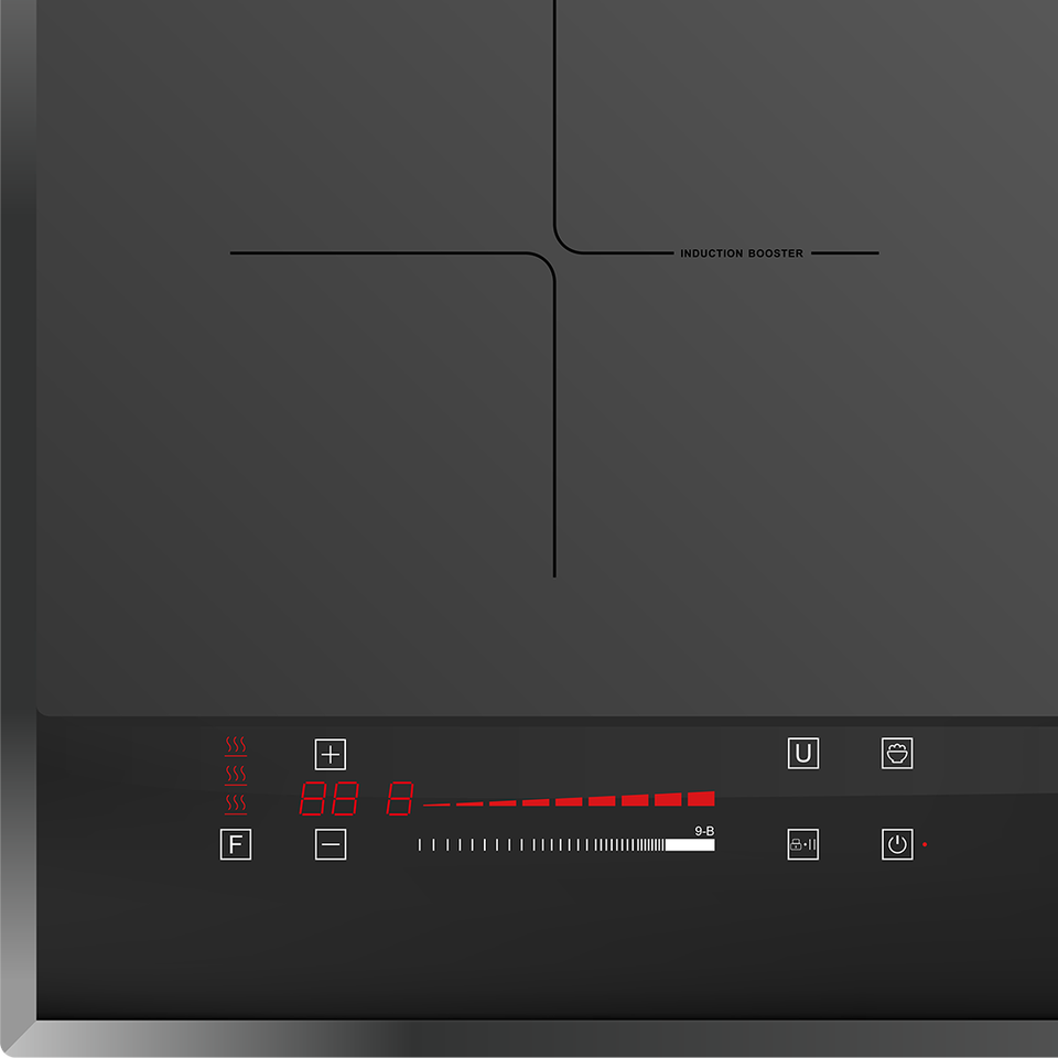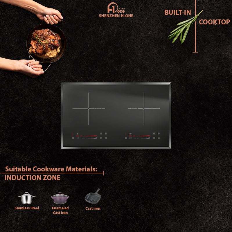 เตาแม่เหล็กไฟฟ้าสองหัวพร้อมระบบควบคุมแบบสัมผัสใช้สายแบบแข็งสีดำสำหรับตลาดเวียดนาม