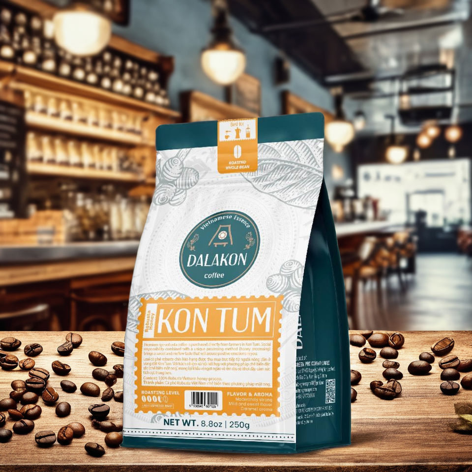 กาแฟเวียดนาม รสคาราเมล หอมหวาน อ่อนโยน มีคาเฟอีน คั่วอ่อนแบบธรรมชาติ ผสมน้ำผึ้ง/เนื้อผลไม้ ชนิดโรบัสต้า บรรจุถุง