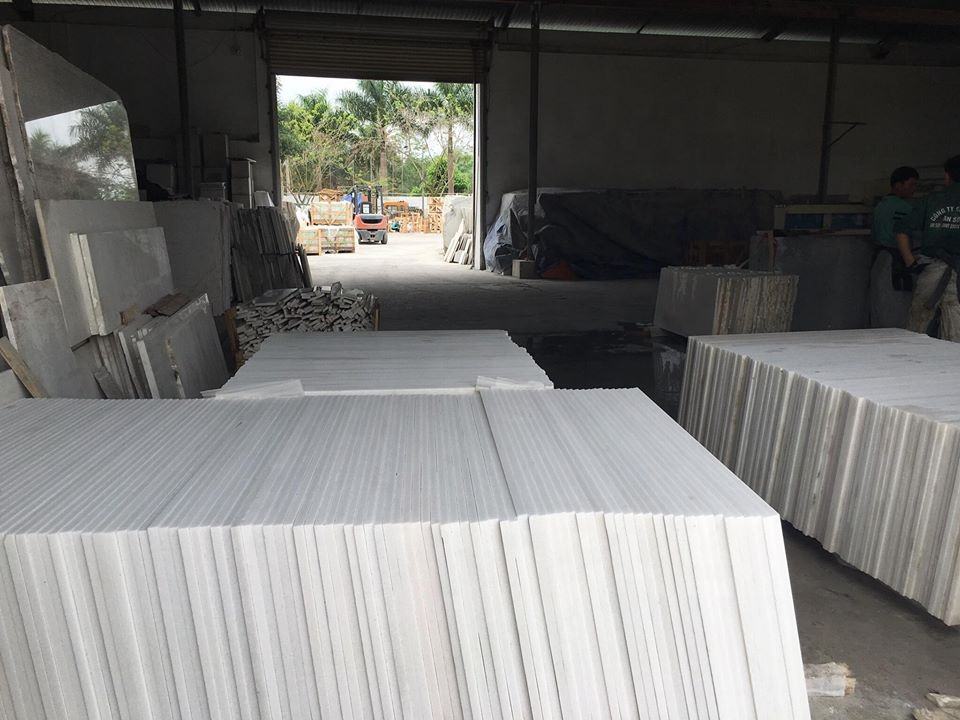 กระเบื้องหินอ่อนเวียดนามสีขาวนมขัดเงาแบบโมเดิร์น ดีไซน์กราฟิก หนา 20 มม. รับประกัน 2 ปี สำหรับอพาร์ทเมนท์ โรงเรียน โรงพยาบาล