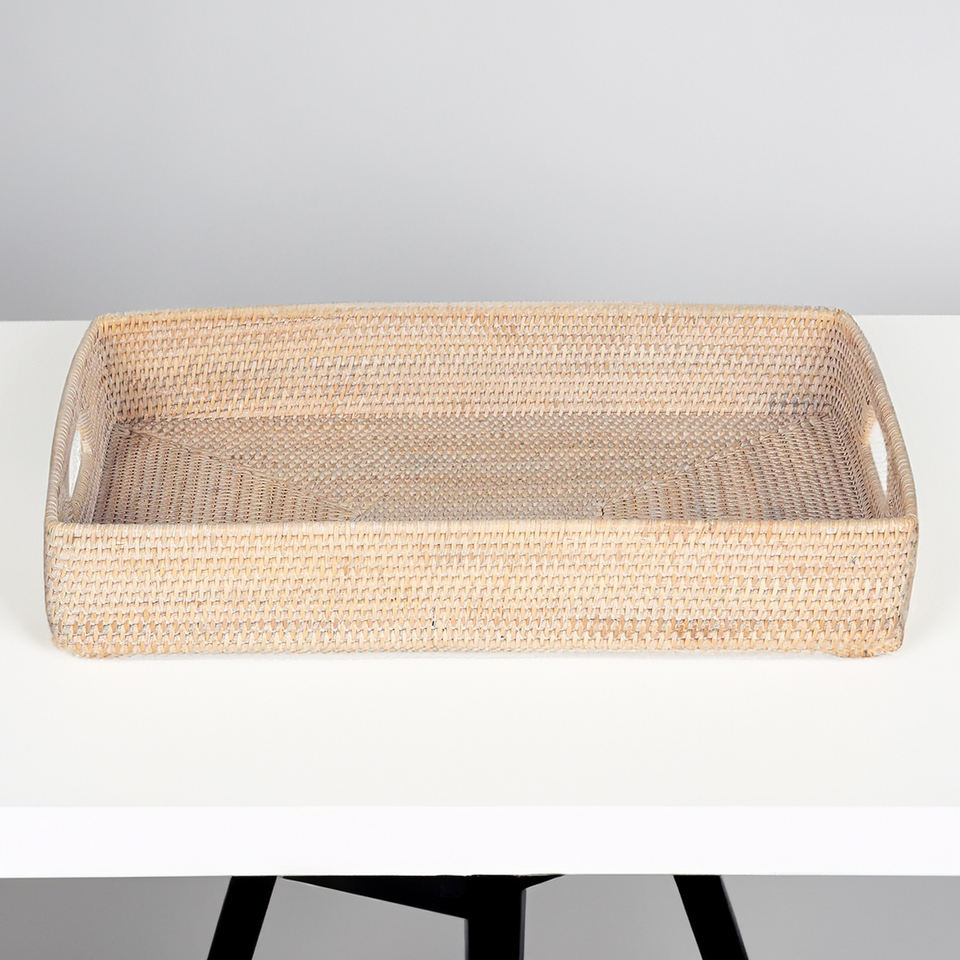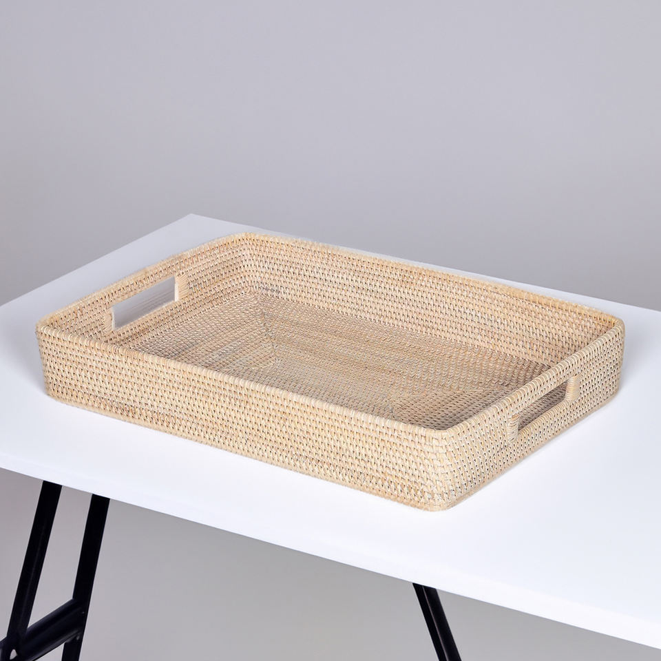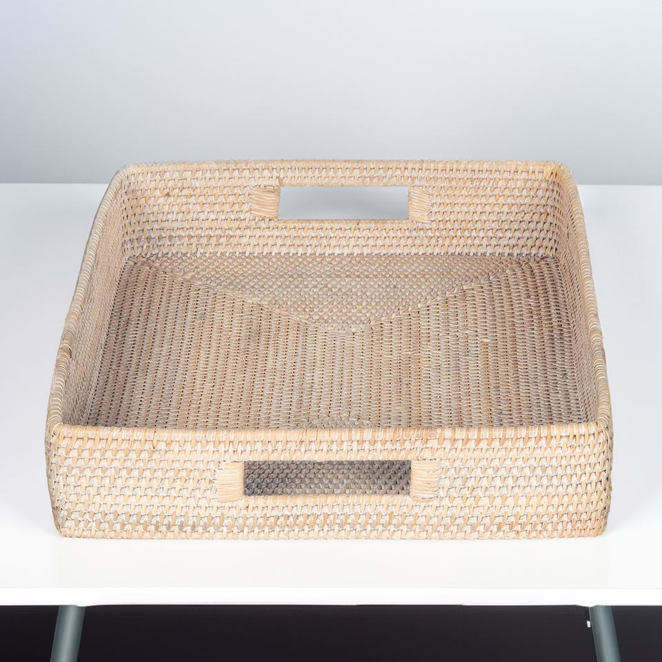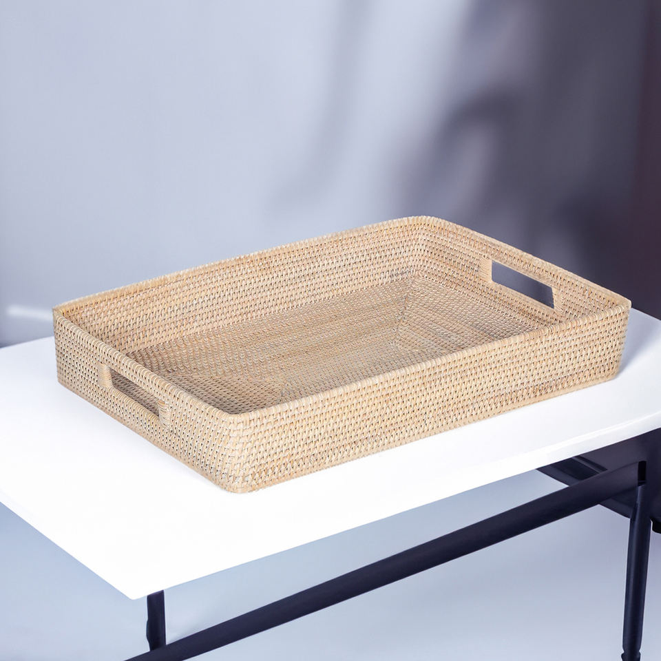 ถาดเสิร์ฟงานฝีมือเวียดนาม รูปทรงเรขาคณิต ฐานไม้ไผ่เป็นมิตรกับสิ่งแวดล้อม ดีไซน์การสานหวายที่ทนทาน ผิวขัดเงา หรูหรา