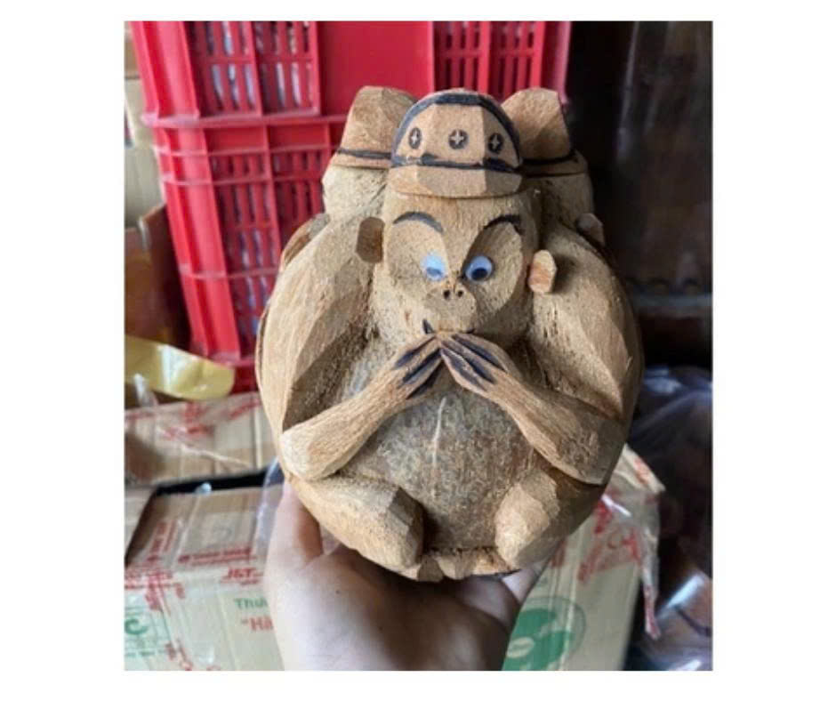 รูปปั้นลิงกะลามะพร้าวธรรมชาติของตกแต่งทำมือเหมาะสำหรับร้านขายของที่ระลึกแนวคิดการตกแต่งบ้านและคำสั่งส่งออก