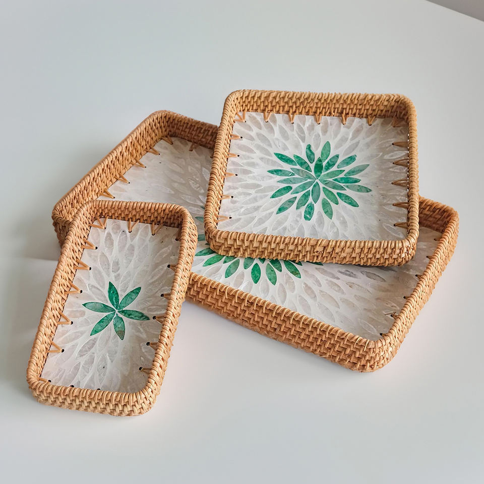 ถาดเสิร์ฟตกแต่งทำมือสุดหรูหรา สวยงาม เป็นมิตรกับสิ่งแวดล้อม ประดับมุกเวียดนาม สำหรับร้านกาแฟ-SM2010