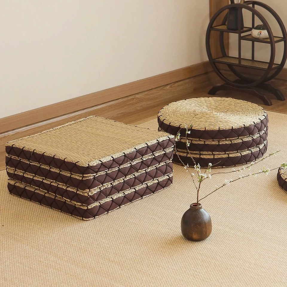 เสื่อหญ้าทะเลธรรมชาติแบบเวียดนามแผ่นรองฟางทำมือสำหรับการทำสมาธิที่นั่งโต๊ะเตี้ยมุมชาและพื้นที่ตกแต่งแบบเซน