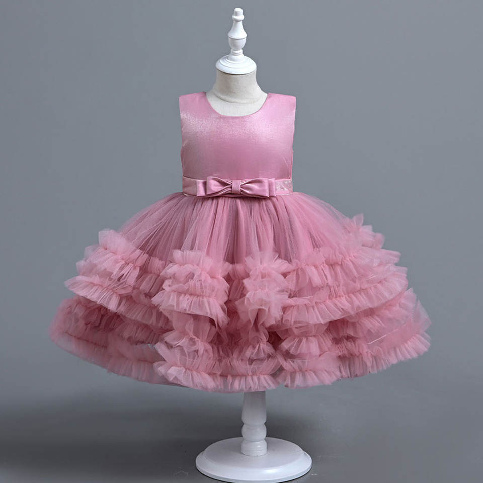 กระโปรงผ้าทูลจับจีบหลายชั้นแขนกุดออกแบบ