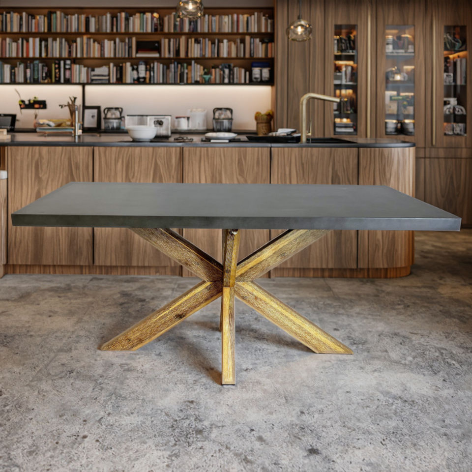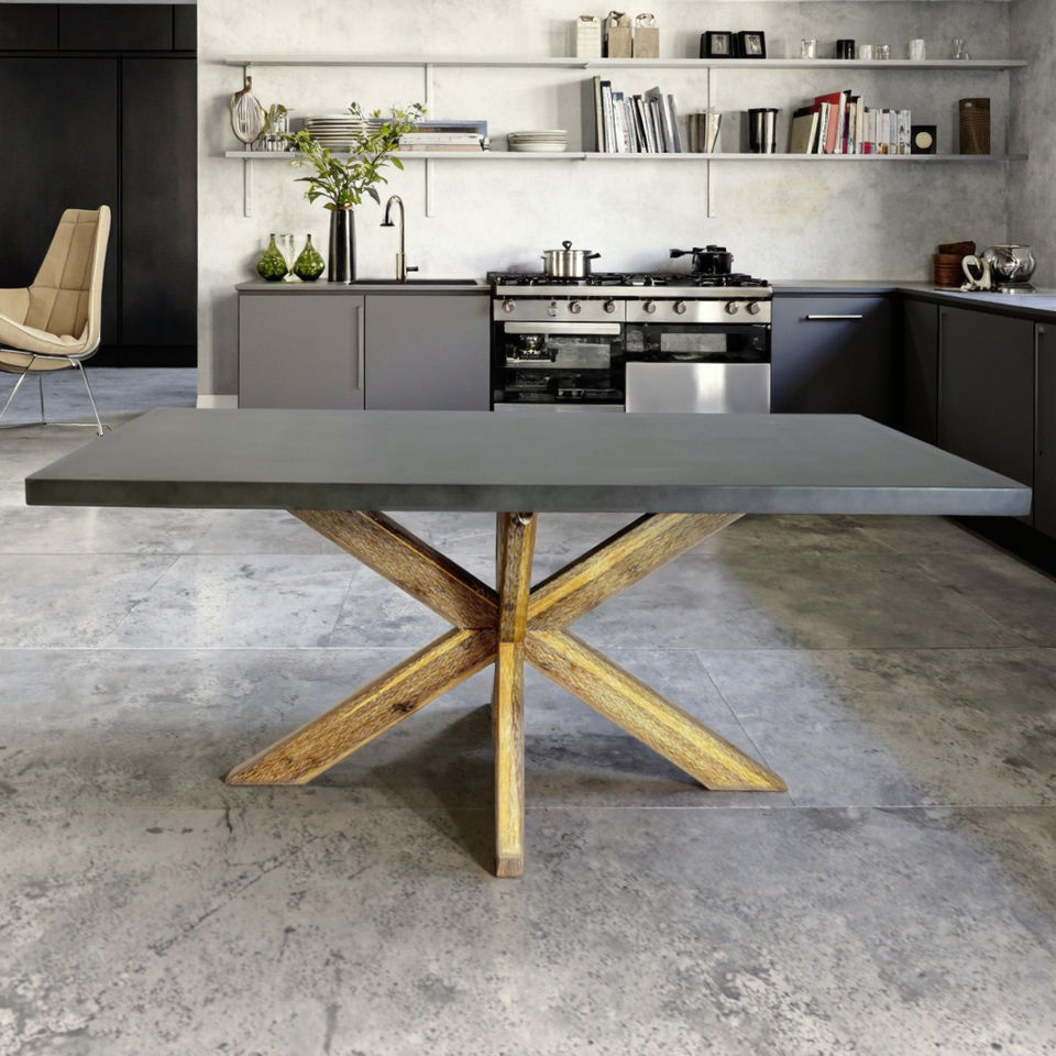 ชื่อผลิตภัณฑ์:ชุดโต๊ะกินข้าวทรงสี่เหลี่ยมผืนผ้าขาไม้อุตสาหกรรมผลิตจากคอนกรีต