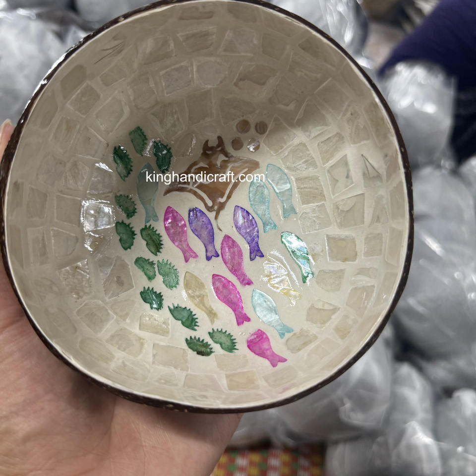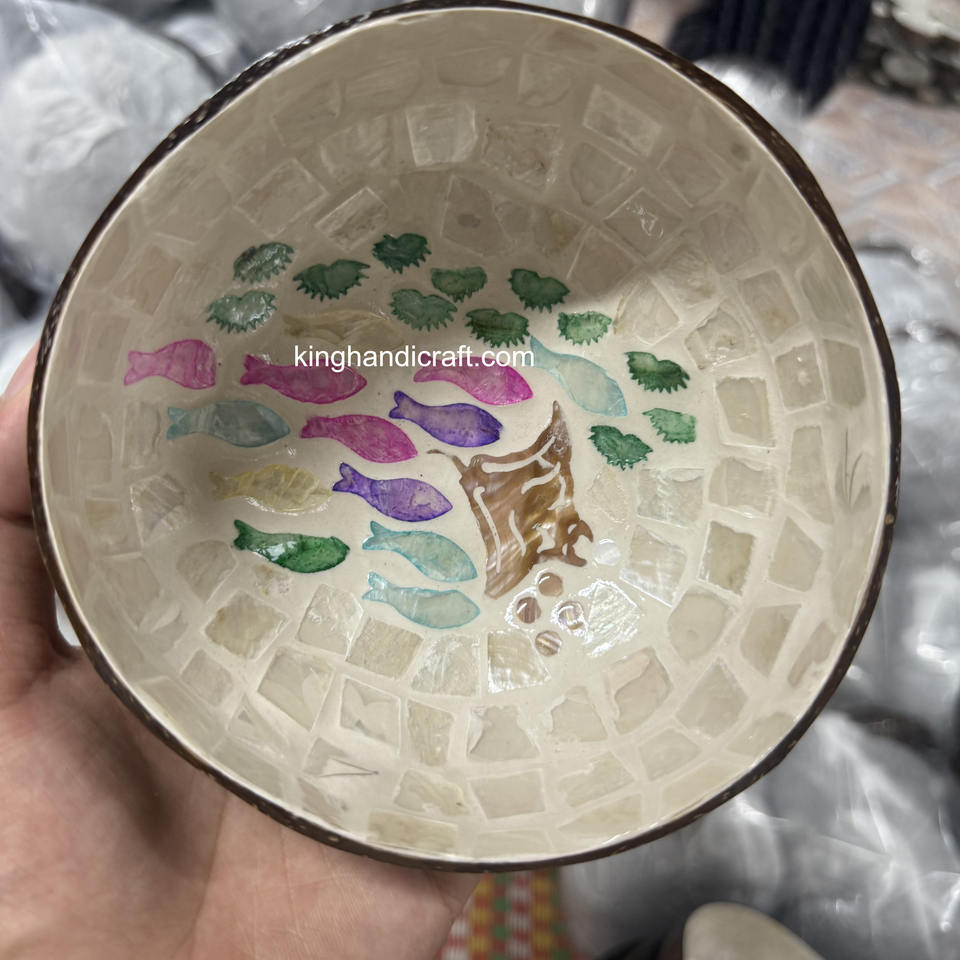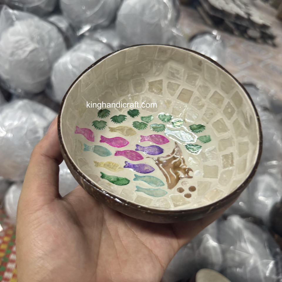 ชามกะลามะพร้าวธรรมชาติที่มาจากเวียดนามเคลือบแล็กเกอร์หลากสี | ของตกแต่งทำมือขายส่งชาม