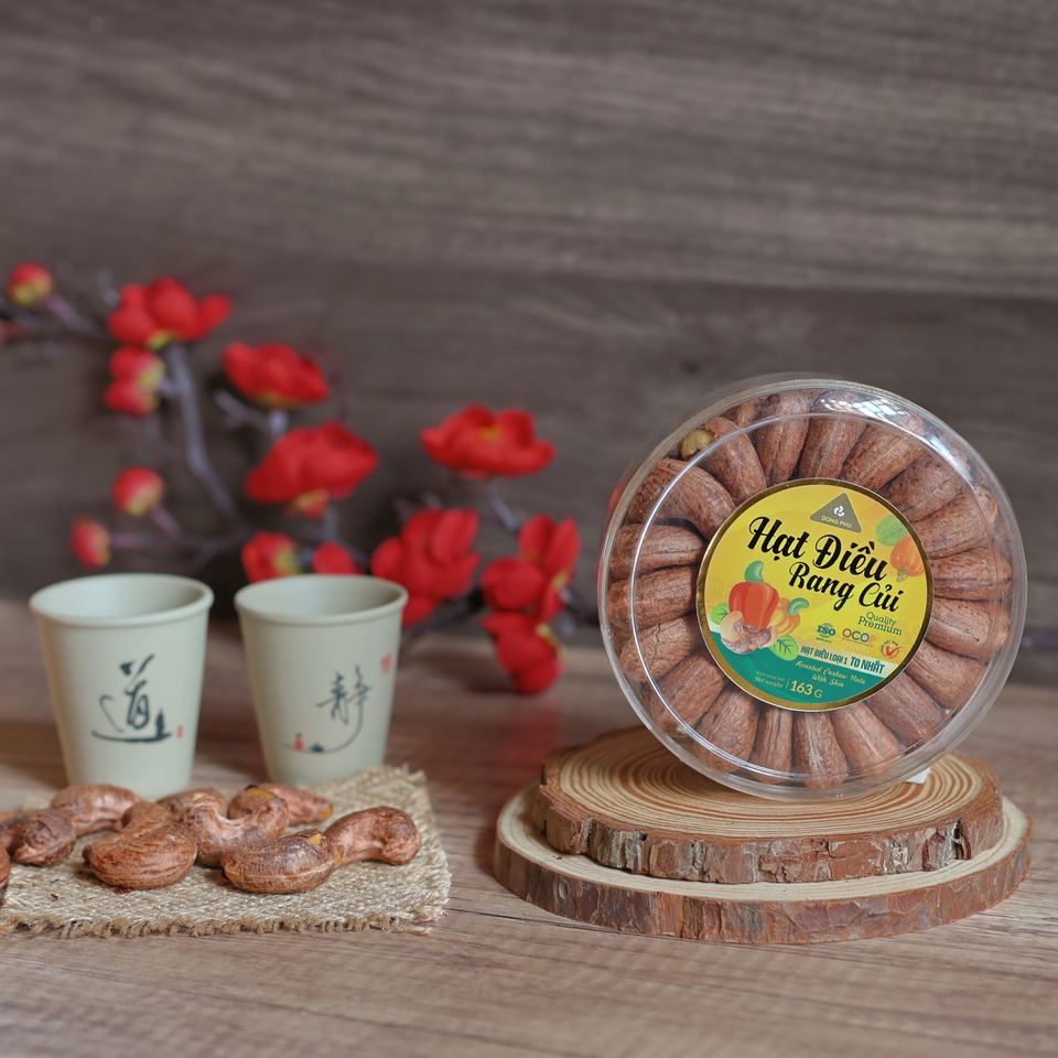 เม็ดมะม่วงหิมพานต์อบแบบออร์แกนิค ไม่ปอกเปลือก คุณภาพพรีเมียม ขนาด W180 น้ำหนัก 163 กรัม บรรจุในกล่องของขวัญทรงกลม - ยี่ห้อตงฟู พร้อมรับประทาน