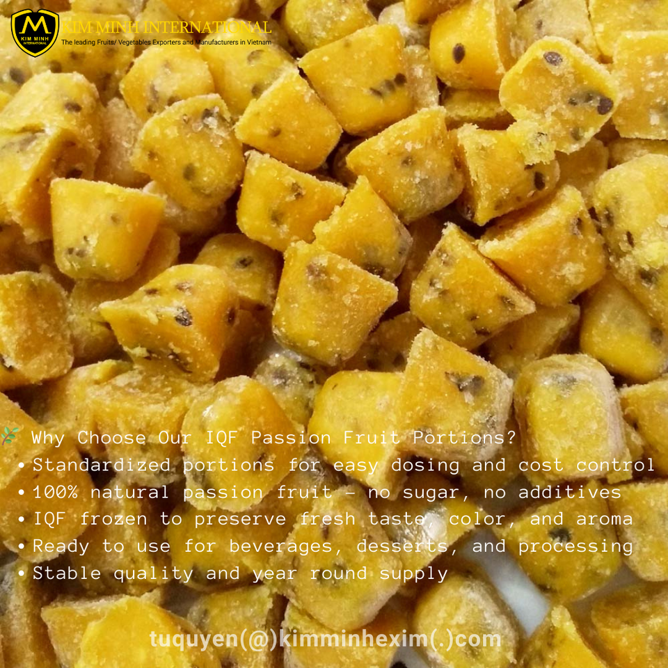 เวียดนาม ผลไม้แช่แข็งคุณภาพพรีเมียม IQF เสาวรสแบบชิ้น แบบก้อน แบบครึ่งลูก แบบทั้งลูก จำหน่ายส่ง
