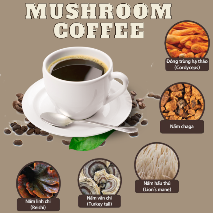 กาแฟเห็ดพรีเมียมจากเวียดนาม/กาแฟเห็ดออร์แกนิก/กาแฟเห็ดเสริมสารอาหาร