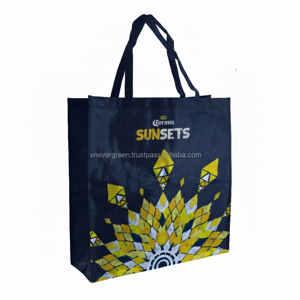ถุงช้อปปิ้งเคลือบ BOPP พิมพ์กราเวียร์ ปรับแต่งได้ เป็นมิตรกับสิ่งแวดล้อม 100% นำกลับมาใช้ใหม่ได้ โปรโมชั่นเวียดนาม
