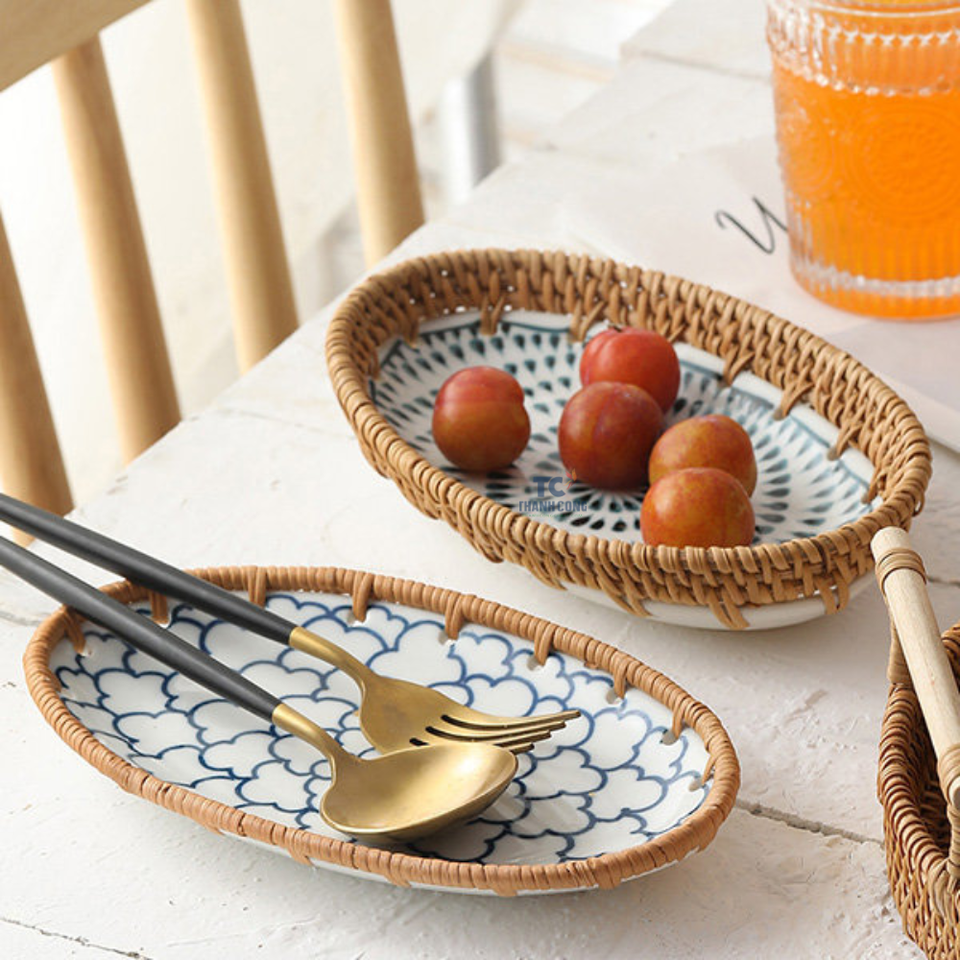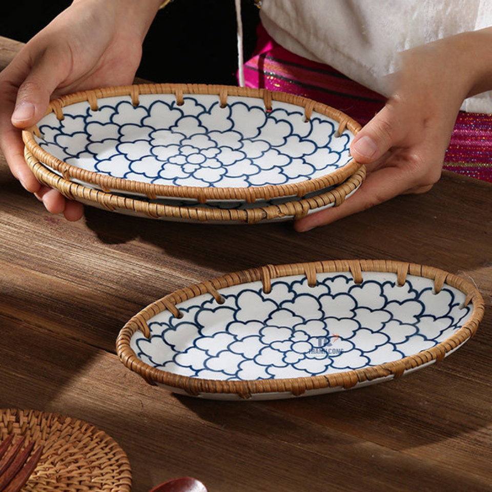 ถาดหวายและเซรามิกสำหรับใช้ในบ้านถาดหวายเซรามิกสานแบบชนบทถาดหวายสำหรับสานแบบใช้งานได้จริงในเวียดนาม