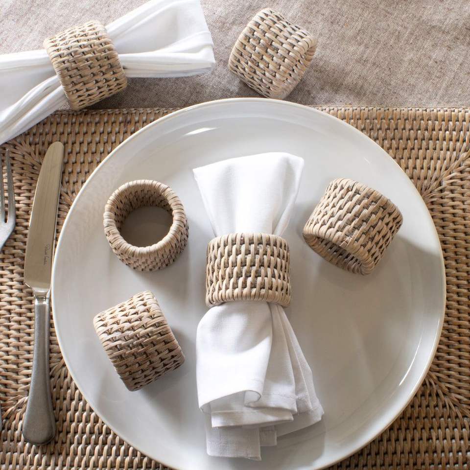 ชุดแหวนผ้าเช็ดปากหวายธรรมชาติแบบเวียดนามทอสำหรับตกแต่งโต๊ะงานแต่งงานงานเลี้ยงของตกแต่งบ้านและร้านอาหาร