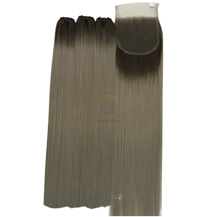 มัดผมแท้จากกระดูกผมตรงเกรดเวียดนามพร้อมที่ปิดผมดิบ