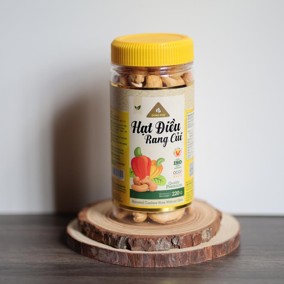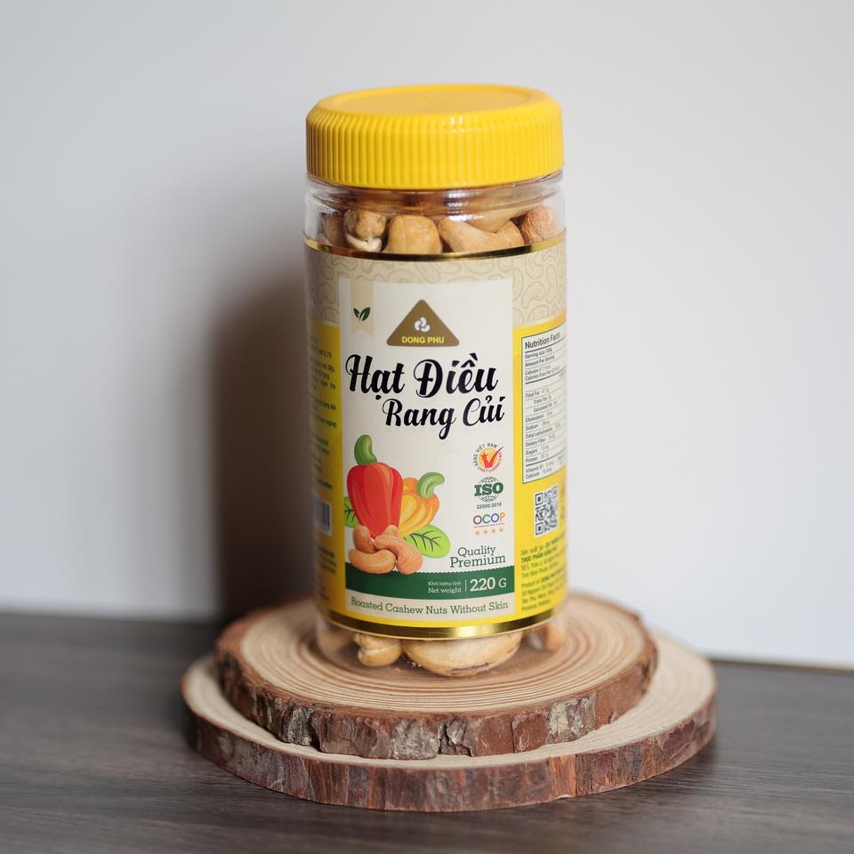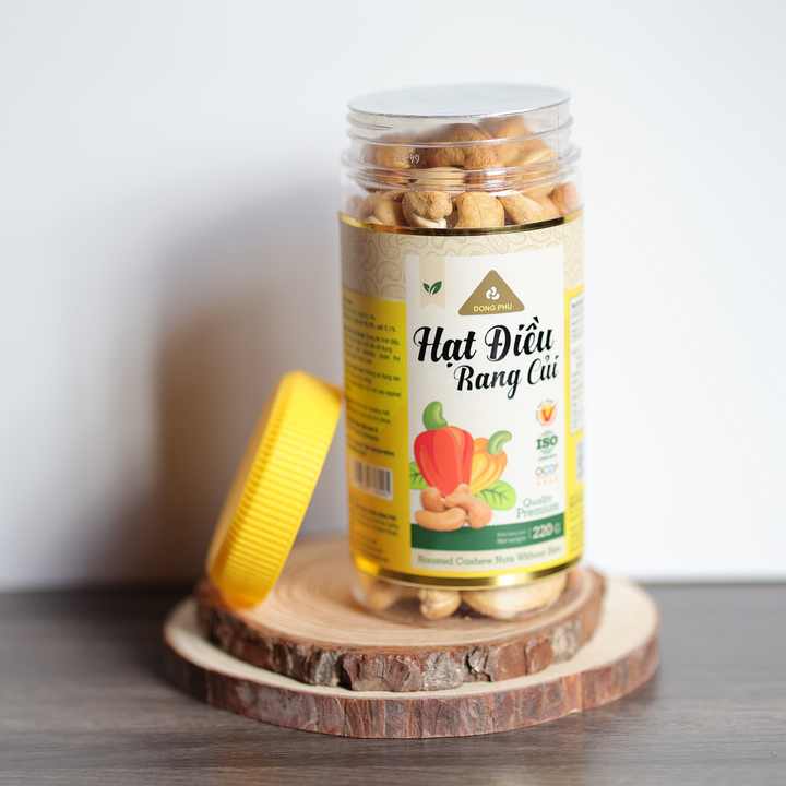 เม็ดมะม่วงหิมพานต์อบแห้ง ดงฟู่ เวียดนาม ออร์แกนิค พรีเมียม W180 บรรจุขวด 220 กรัม ฝาสีเหลือง รสเค็มเนย หอมมัน รสชาติเฉพาะตัว ผลิตจากโรงงานโดยตรง
