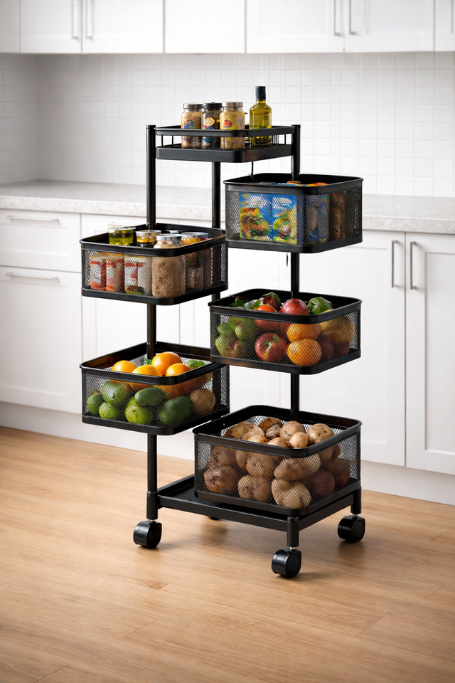 ชั้นวางของในครัวแบบพับได้หลายชั้น วัสดุโลหะน้ำหนักเบา หมุนได้ ทันสมัย ประกอบง่าย จากเวียดนาม รุ่น EDPRMS000