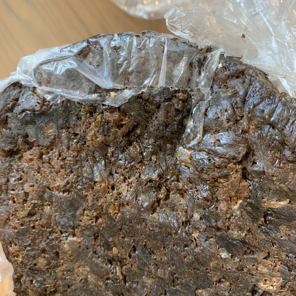 สี:สีเหลืองอ่อนถึงน้ำตาลอ่อน, ลักษณะเป็นก้อนสม่ำเสมอ