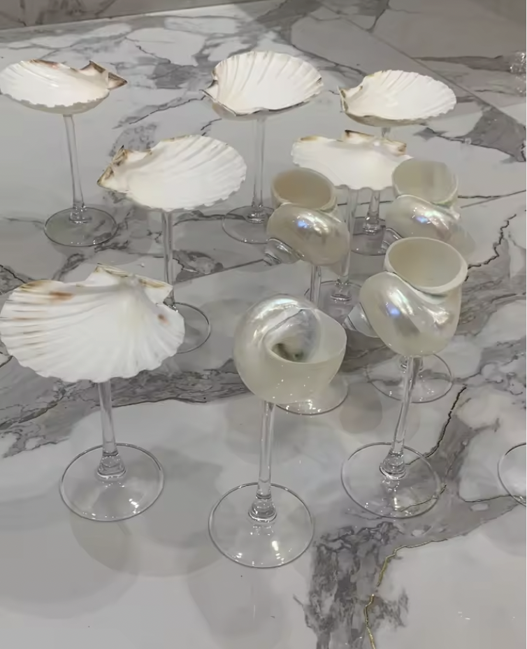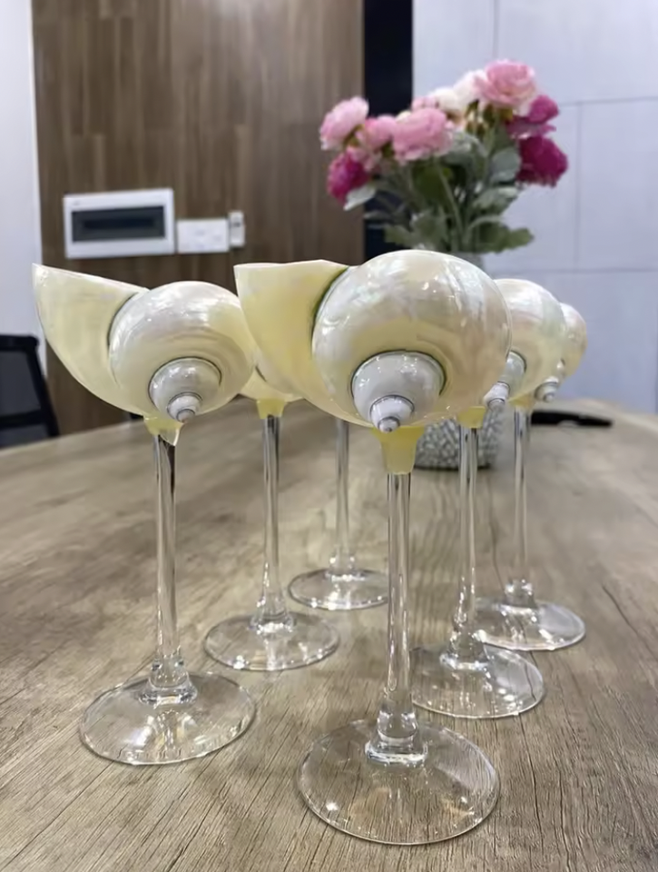 แก้วไวน์เปลือกหอยเวียดนาม แก้วดื่มเปลือกหอยทำมือ สำหรับไวน์ ค็อกเทล ตกแต่งโต๊ะอาหารทะเล ของตกแต่ง