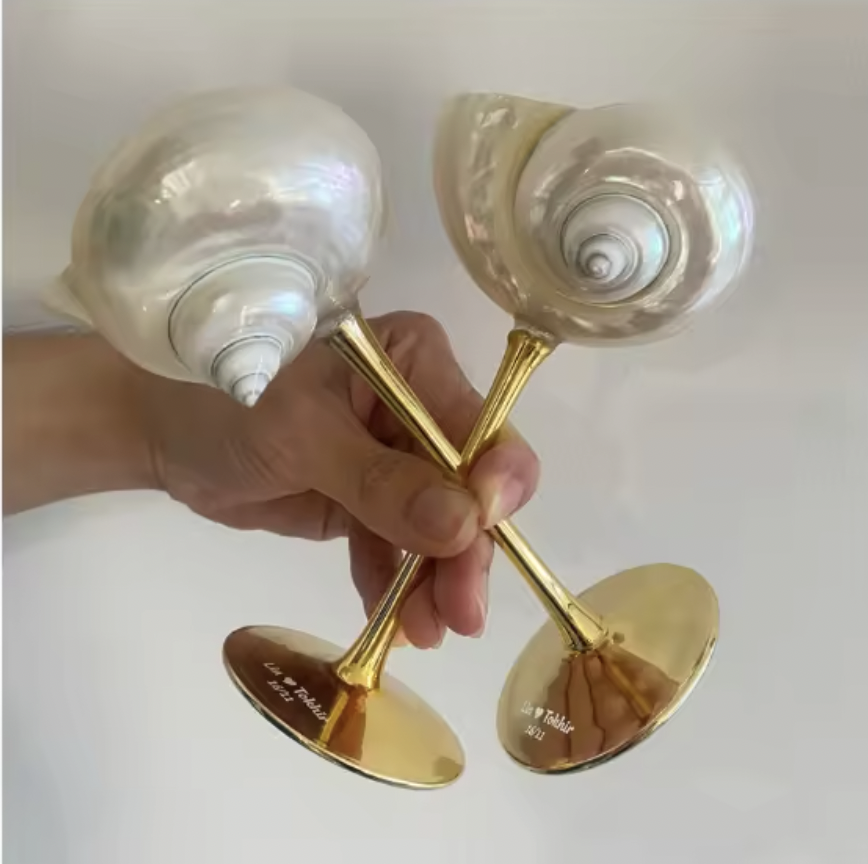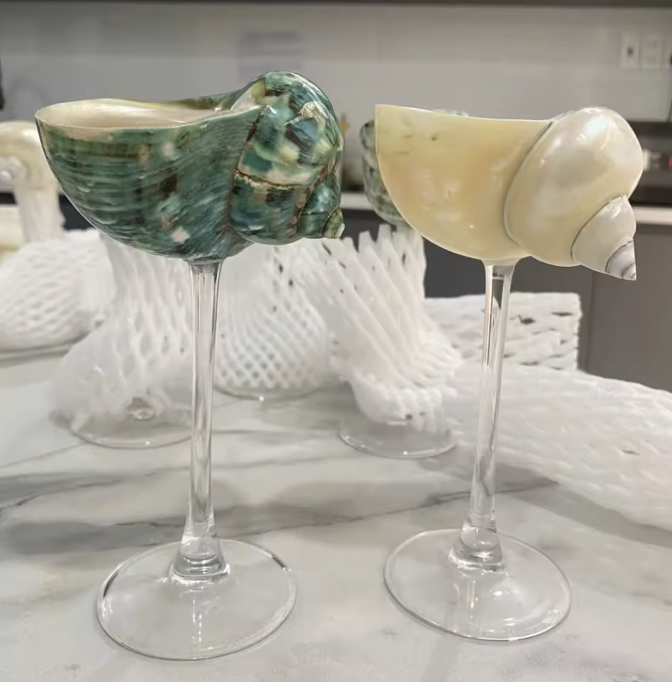 แก้วไวน์เปลือกหอยเวียดนาม แก้วน้ำเปลือกหอยธรรมชาติ สำหรับไวน์ ค็อกเทล ตกแต่งโต๊ะบาร์ริมชายฝั่งสไตล์เรียบง่าย