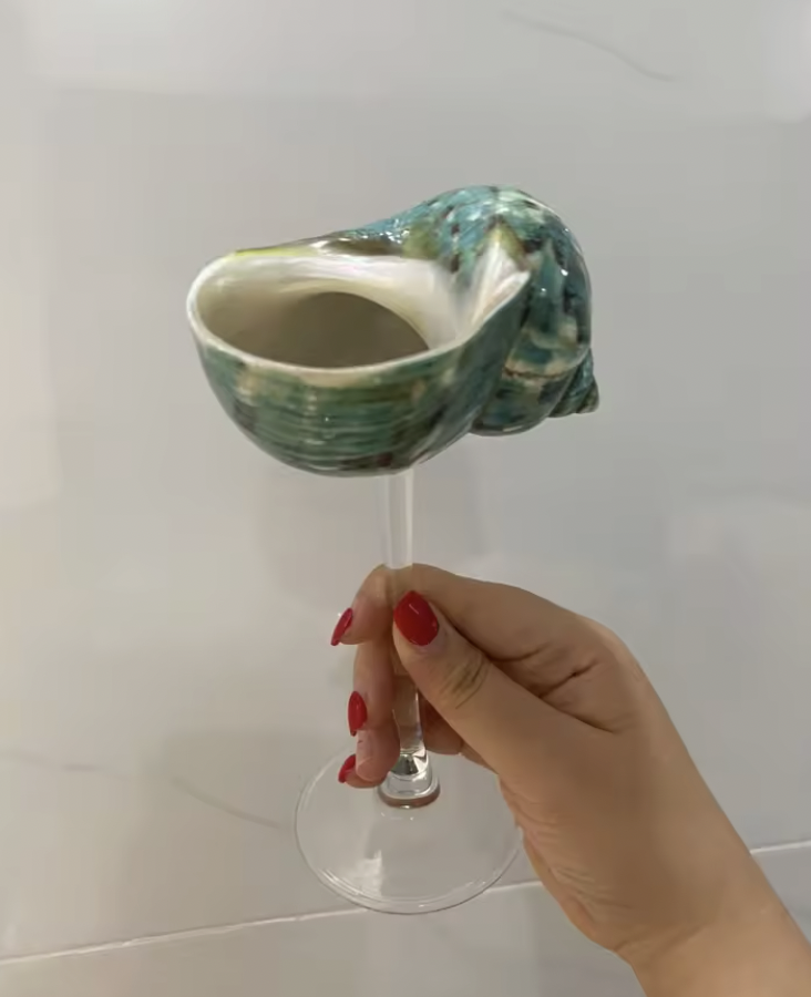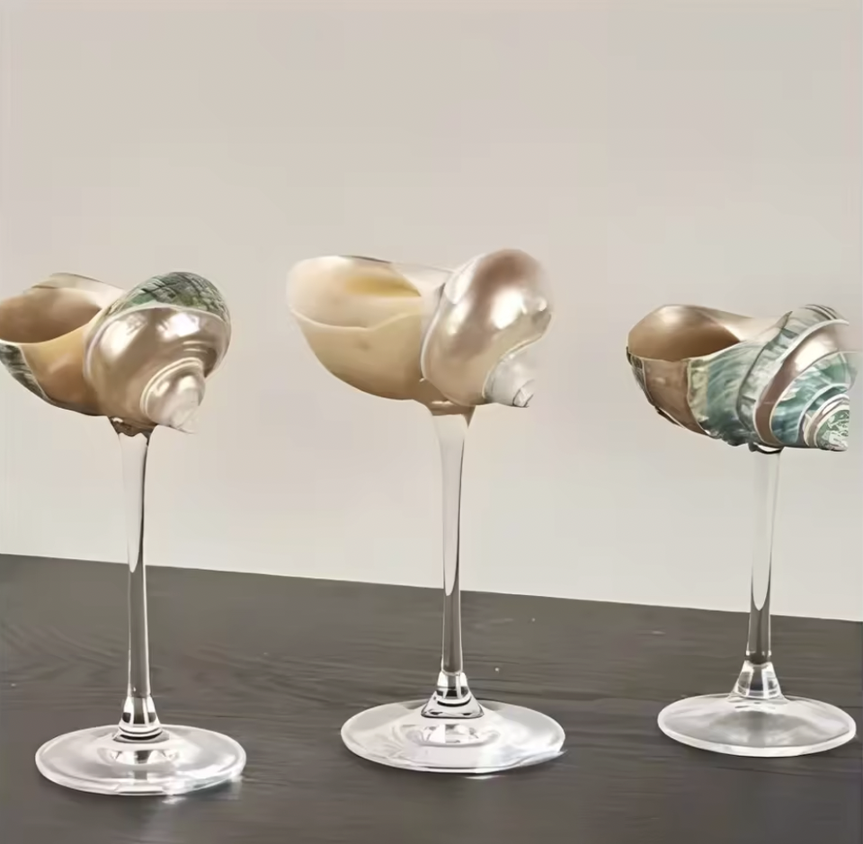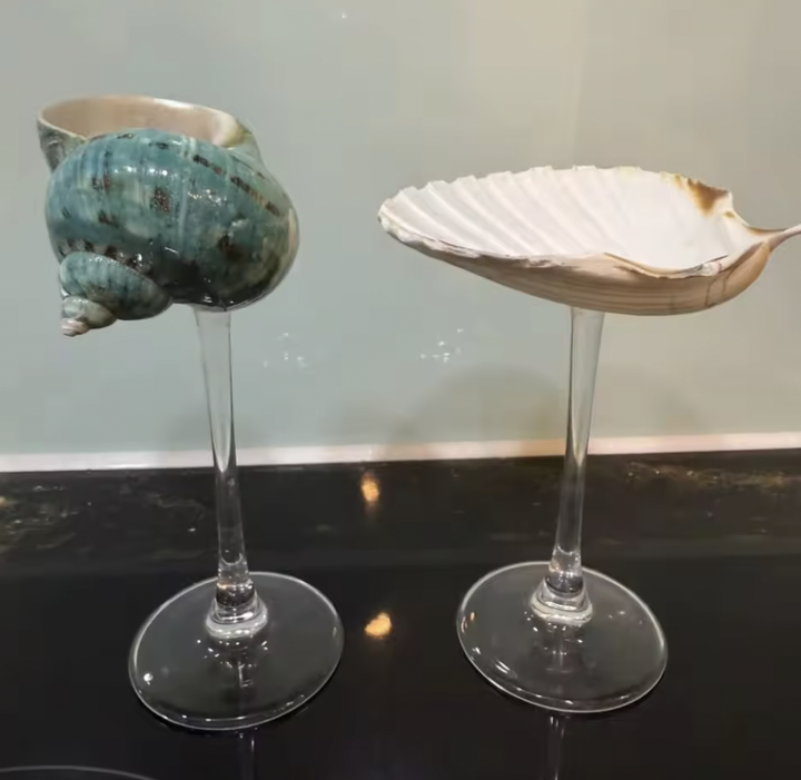 แก้วไวน์เปลือกหอยเวียดนาม แก้วน้ำเปลือกหอยธรรมชาติ สำหรับไวน์ ค็อกเทล ตกแต่งโต๊ะบาร์ริมชายฝั่ง ของตกแต่งดีไซน์สวย