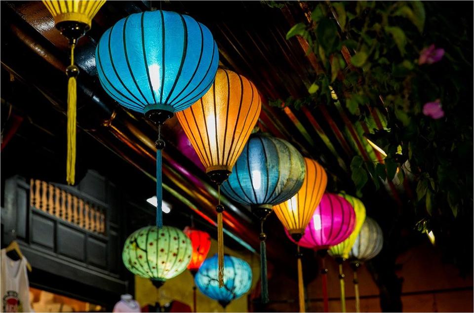 โคมไฟผ้าไหมสำหรับงานเทศกาลและอุปกรณ์ตกแต่งสวนในเวียดนาม