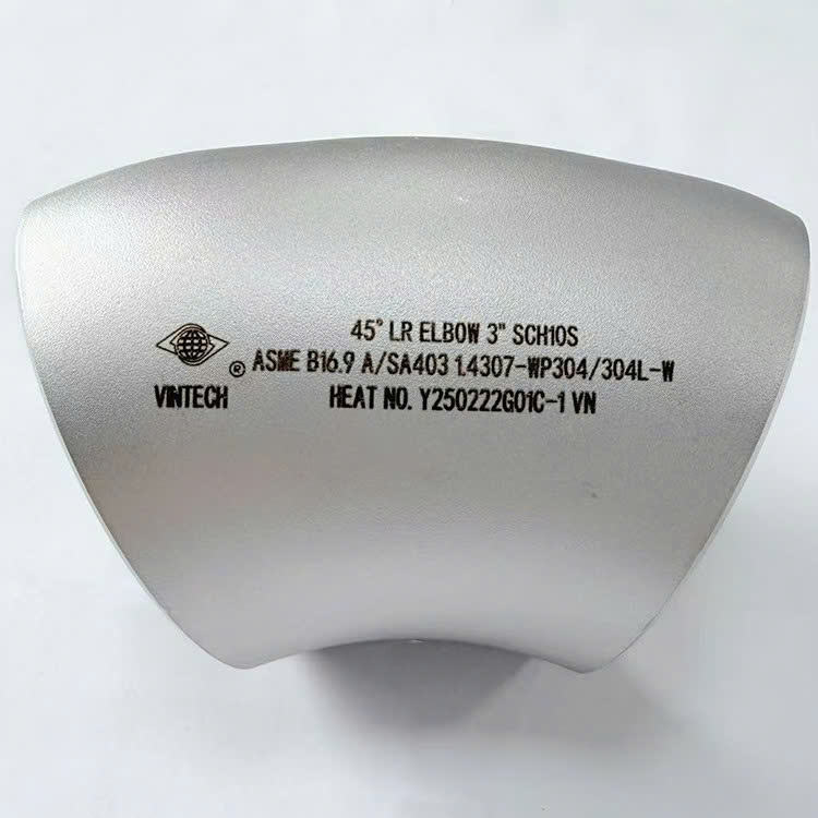 ข้อต่อท่อสแตนเลสเวียดนาม ข้องอ 45 องศา รัศมียาว มาตรฐาน ASME B169 ASA403 304 304L 316 316L สำหรับแรงดันสูง ขนาด 1 2 ถึง 12 นิ้ว