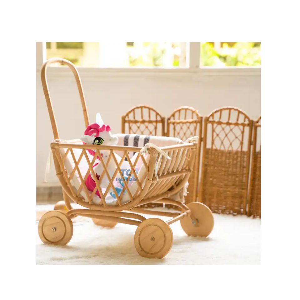 รถเข็นเด็กทำจากหวายสำหรับเด็กรถเข็นสำหรับตุ๊กตา