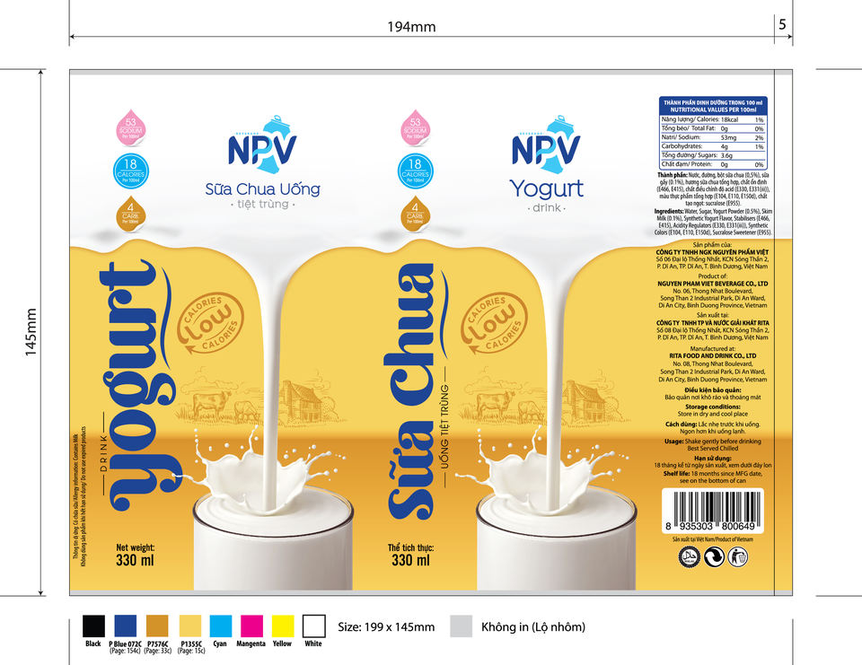 ชื่อผลิตภัณฑ์:เครื่องดื่มโยเกิร์ต330มล. กระป๋อง