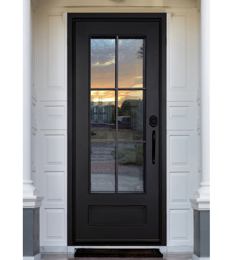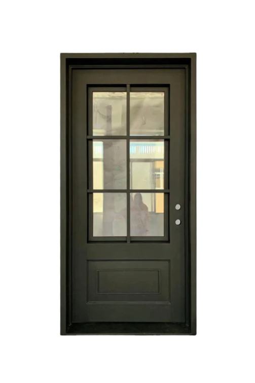ประตูหน้าประตูเหล็กแบบสวิงเดี่ยวแบบทันสมัยประตูทางเข้าแบบเหล็กดัดทึบสำหรับพื้นผิววิลล่าสำเร็จรูปผู้จัดจำหน่ายในเวียดนาม