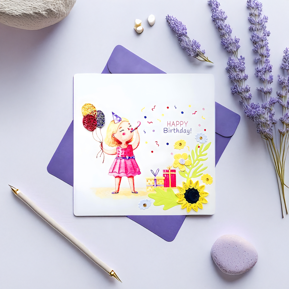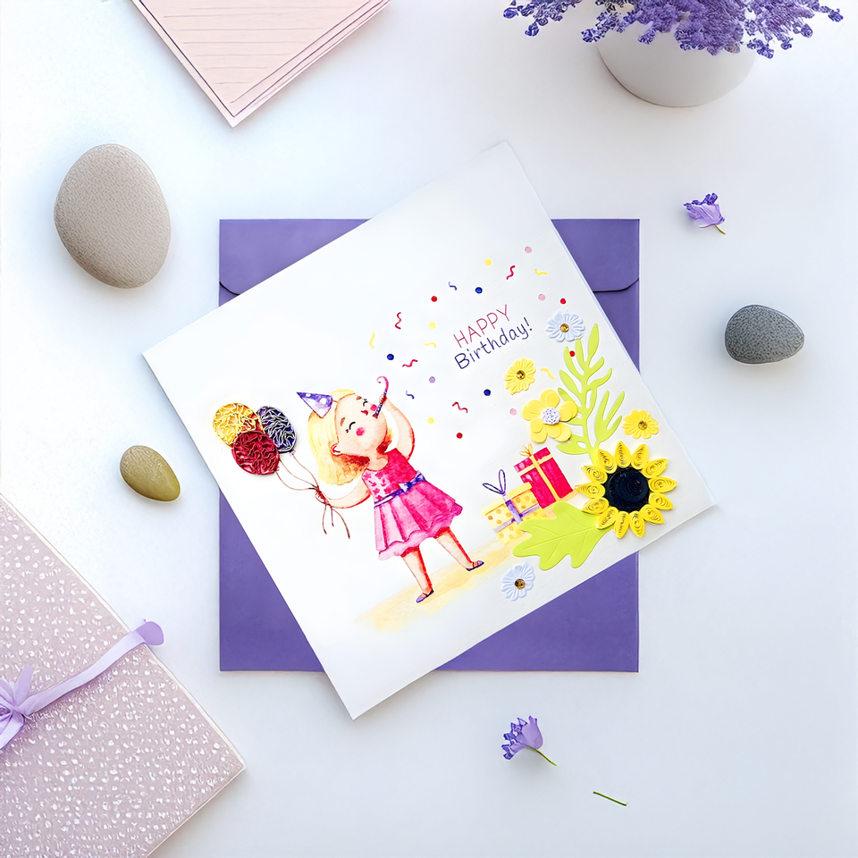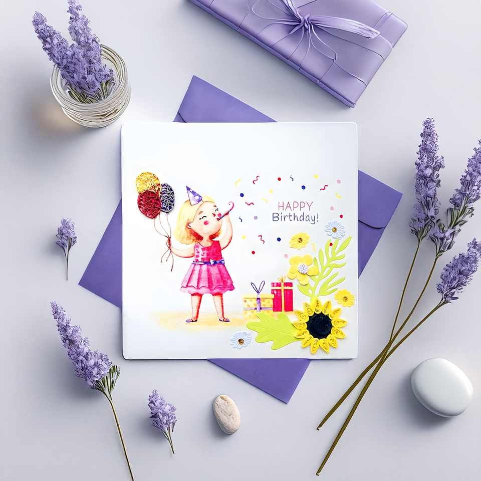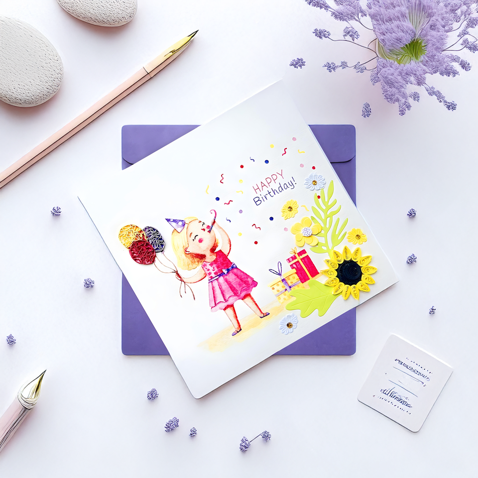 Vietnam Paper Greeting Card Happy Birthday Quilling Card Handmade with Raised 3D Flower Embossed Decorative Design
