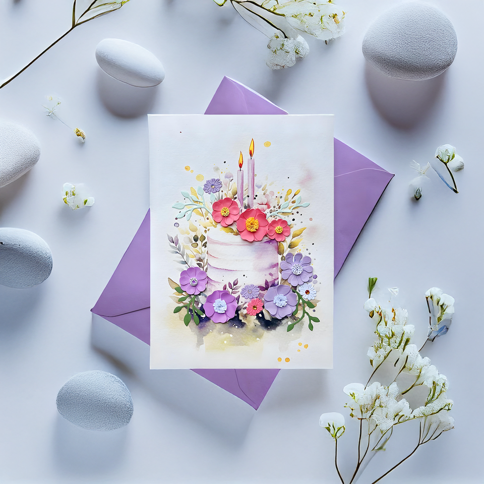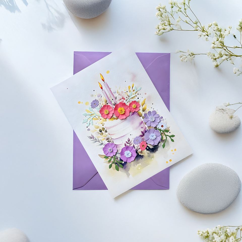 การ์ดอวยพรทรงสี่เหลี่ยมกระดาษเวียดนามเป็นมิตรต่อสิ่งแวดล้อมสุขสันต์วันเกิดการ์ดม้วนปั๊มทองลายดอกไม้