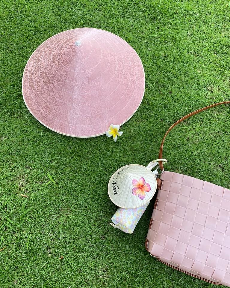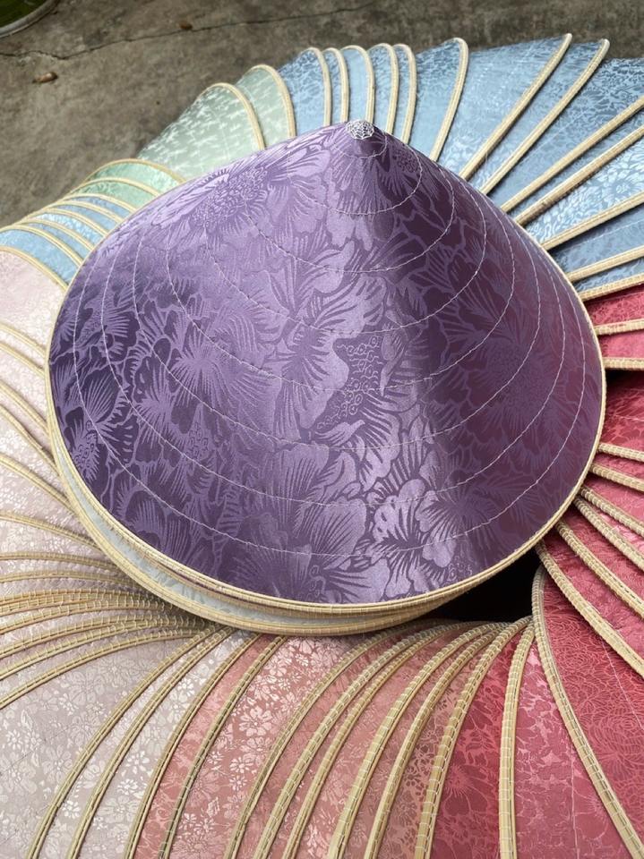 หมวกทรงกรวยใบปาล์มแบบถักด้วยมือของเวียดนามสำหรับถ่ายภาพแฟชั่นตกแต่งบ้าน