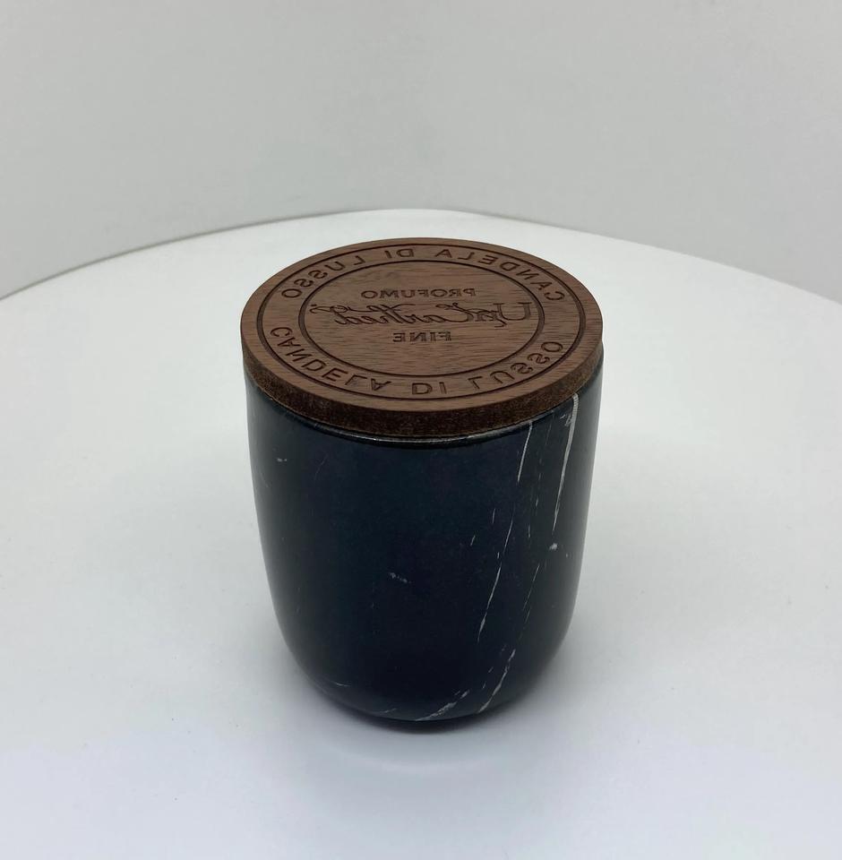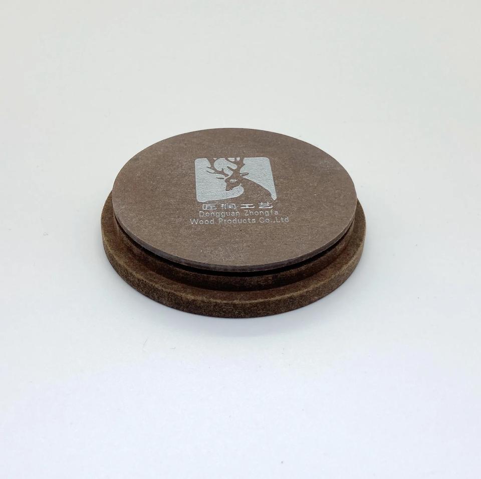 เวียดนามวอลนัทสีสัมผัสที่เรียบรู้สึกไม้อัด MDF ลึกรักขวดที่กําหนดเองฝาเทียนทรงกลมแกะสลักโลโก้ฝาไม้