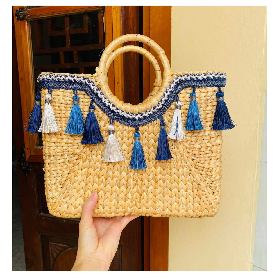 กระเป๋าผักตบชวาเวียดนาม: 100% ผักตบชวาธรรมชาติที่ทำขึ้นเหมาะสำหรับปิกนิกในฤดูร้อนและของจำเป็นสำหรับการท่องเที่ยวที่ชายหาดได้อย่างง่ายดาย