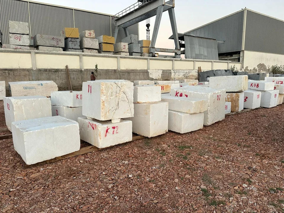บล็อกหินอ่อนเนื้อหยาบจากคริสตัลหินแคลไซต์ธรรมชาติสีขาวจากเวียดนามสำหรับใช้งานกลางแจ้ง
