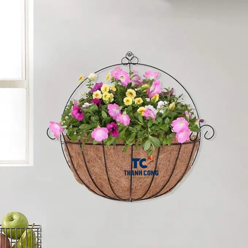 กระถางปลูกต้นไม้แบบใช้แล้วทิ้งจากใยมะพร้าว ผลิตในเวียดนาม ขายส่ง เป็นมิตรต่อสิ่งแวดล้อม ตะกร้าใยธรรมชาติสไตล์โบฮีเมียน สำหรับตกแต่งสวน บ้าน และภายนอกอาคาร