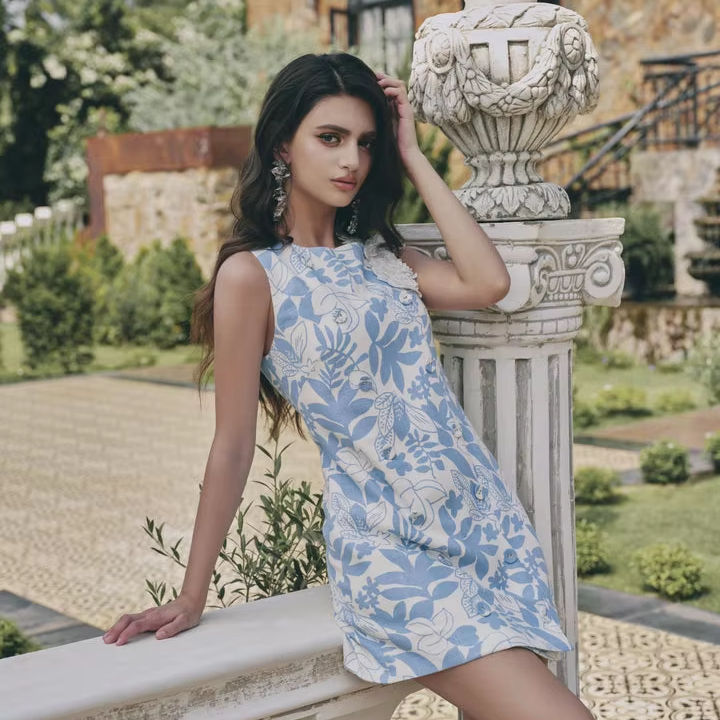 Product Name:Blue Flora Dress