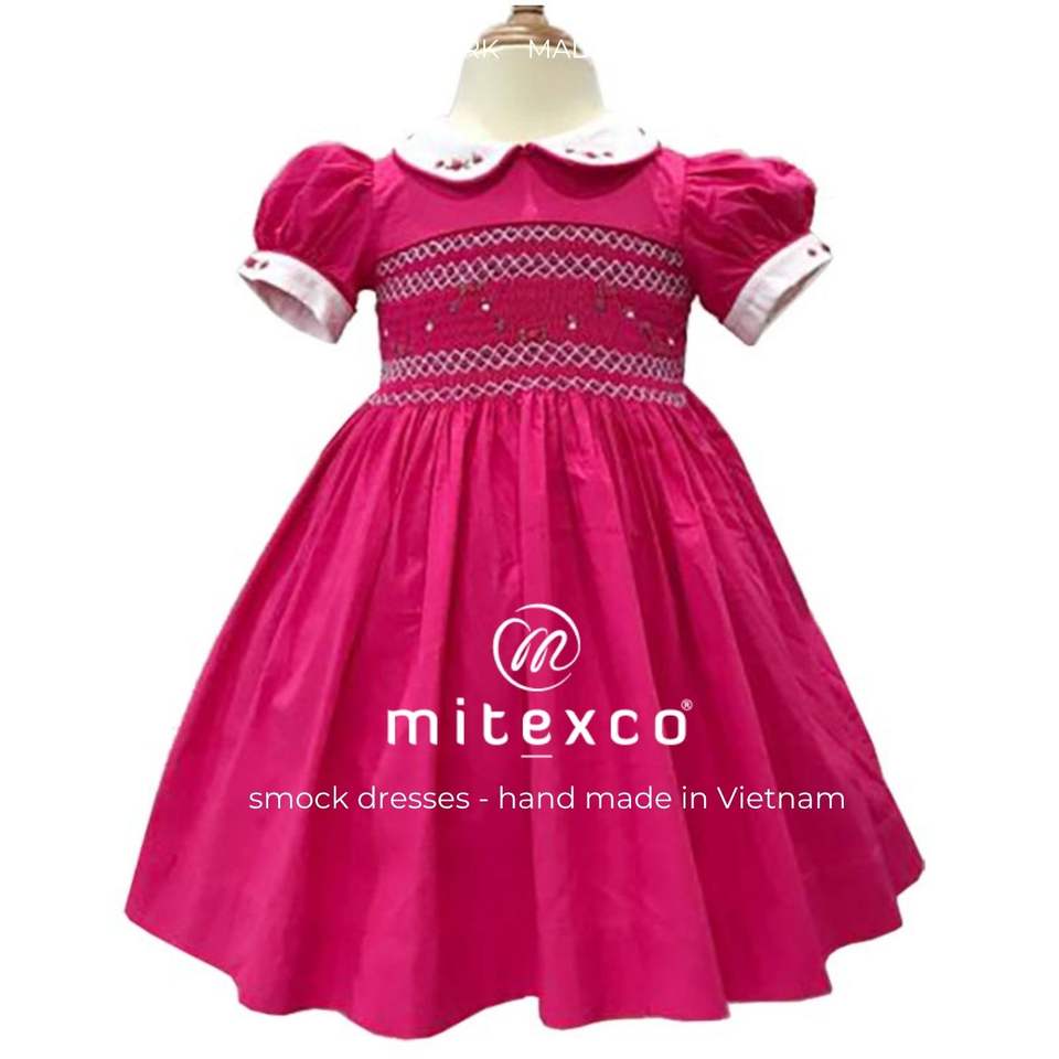Mitexco ชุดเดรสสำหรับเด็กหญิงชุดเดรสปักลายสำหรับเด็กผู้ชายชุดเดรสสำหรับเด็กผู้หญิงแบบสม็อคโรงงานในเวียดนาม
