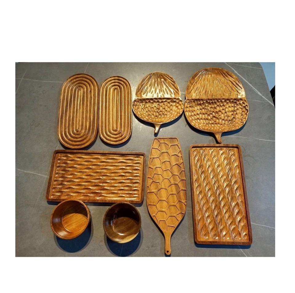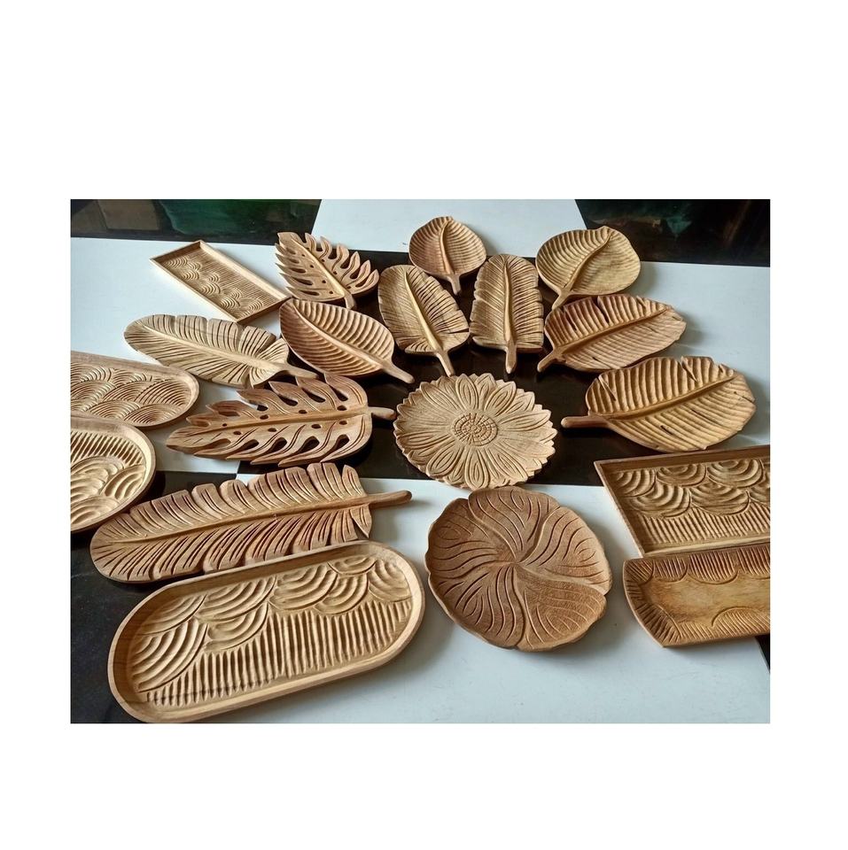 ถาดไม้พร้อมที่จับสำหรับจัดเก็บเค้กผลไม้ของขวัญ/ถาดไม้พร้อมที่จับรูปใบไม้เครื่องครัวที่บ้าน