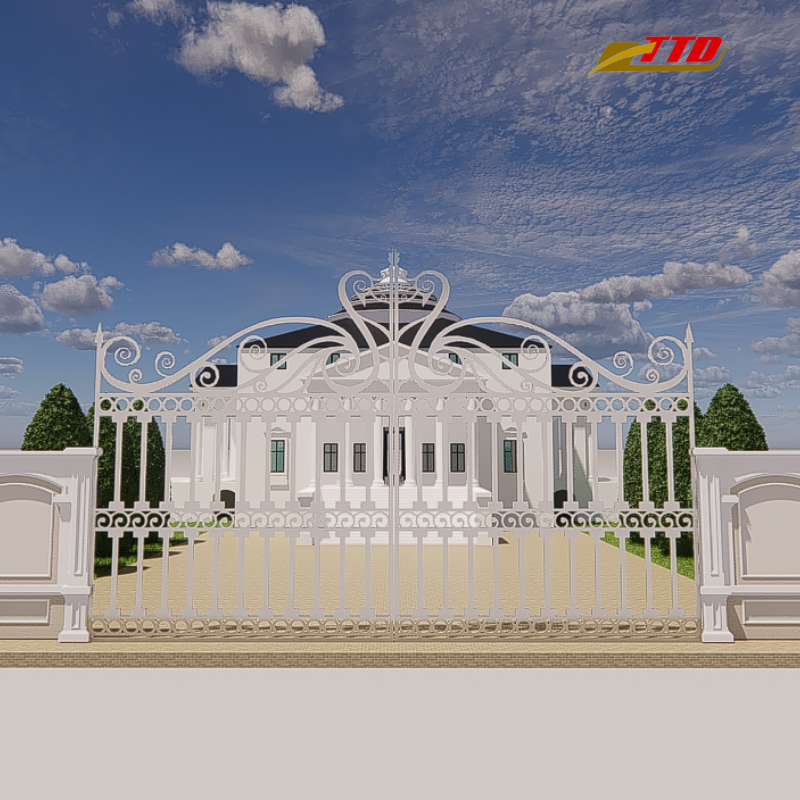 ประตูเหล็กดัดแบบกำหนดเองผลิตในเวียดนามพร้อมพื้นผิวเคลือบด้วยผงและออกแบบตกแต่งเพื่อความปลอดภัยในการเข้าถึง