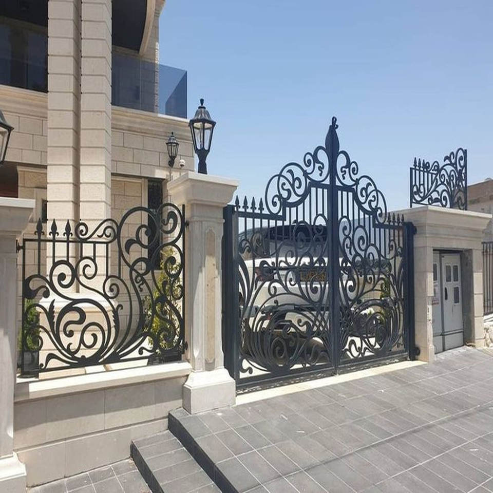 ประตูเหล็กดัดแบบกำหนดเองผลิตในเวียดนามพร้อมพื้นผิวเคลือบด้วยผงและรายละเอียดการตกแต่งที่หรูหราเพื่อความปลอดภัย