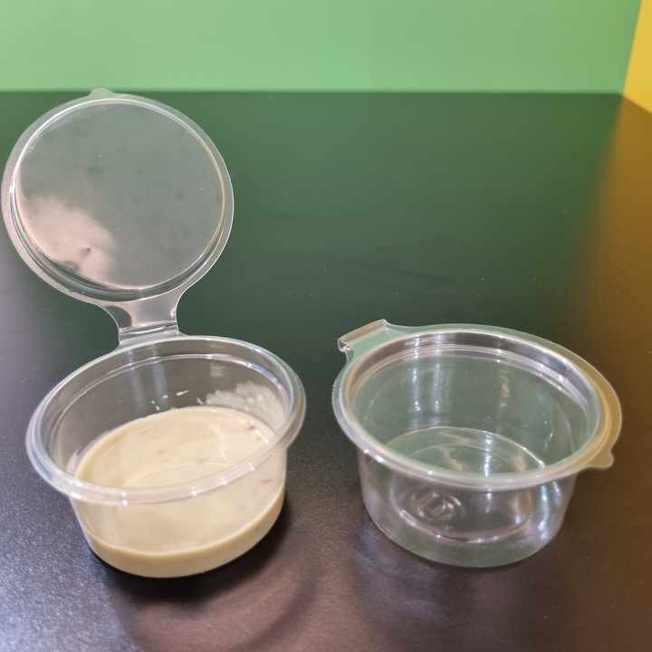 ถ้วยซอสพลาสติกสำหรับสัตว์เลี้ยงขนาด2ออนซ์60มล. ภาชนะใส่ซอสใช้แล้วทิ้งพร้อมฝาปิดแบบบานพับผู้ผลิตจากเวียดนาม