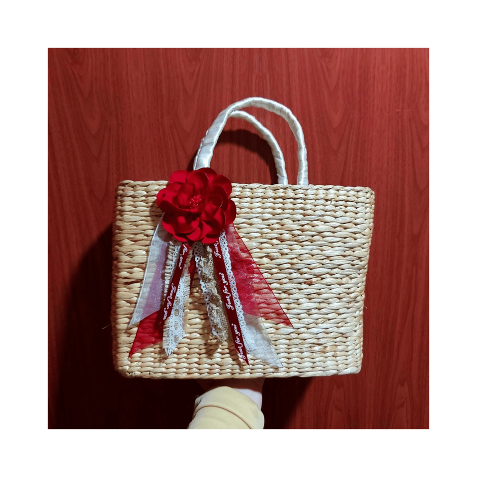 กระเป๋าผักตบชวาพรีเมี่ยมจากเวียดนามสานด้วยการปิดด้วยแม่เหล็กและกระเป๋าด้านในสำหรับการตกแต่งรีสอร์ทและช้อปปิ้ง