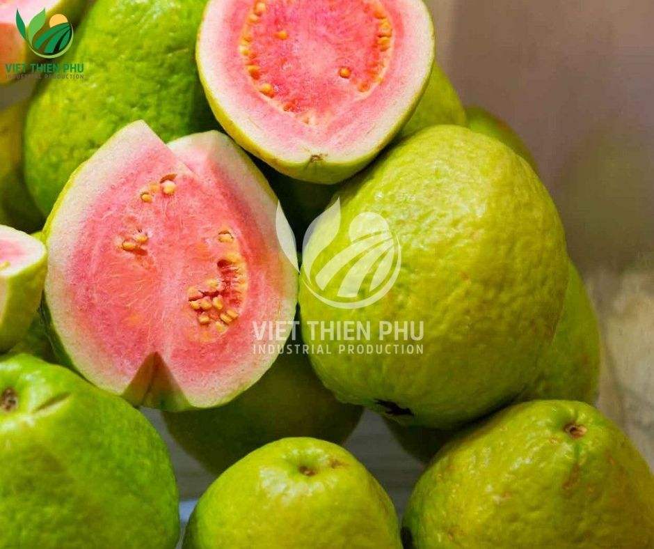 กัววาสีชมพูออร์แกนิกแช่แข็งแบบ LQF จากเวียดนาม หั่นเต็มลูก บรรจุภัณฑ์สุญญากาศแบบแพ็คใหญ่ ยี่ห้อ VTP รสหวาน ราคาถูก
