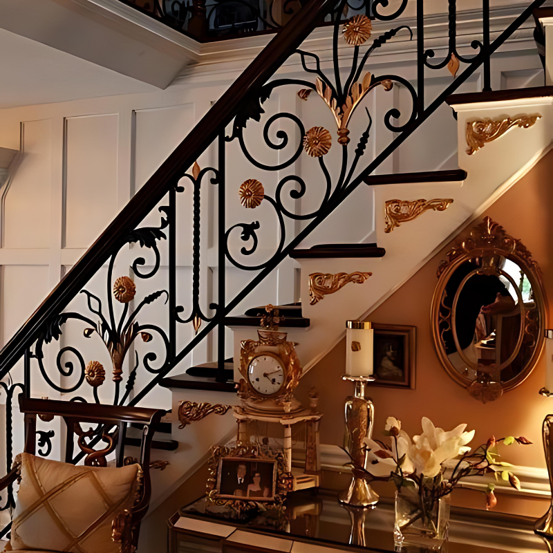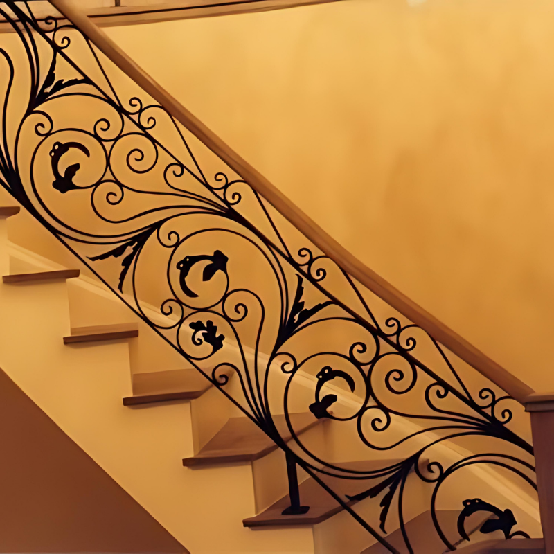ราวบันไดเหล็กดัดเคลือบด้วยผงสำหรับบันไดในร่มผลิตจากผู้ผลิตในเวียดนาม