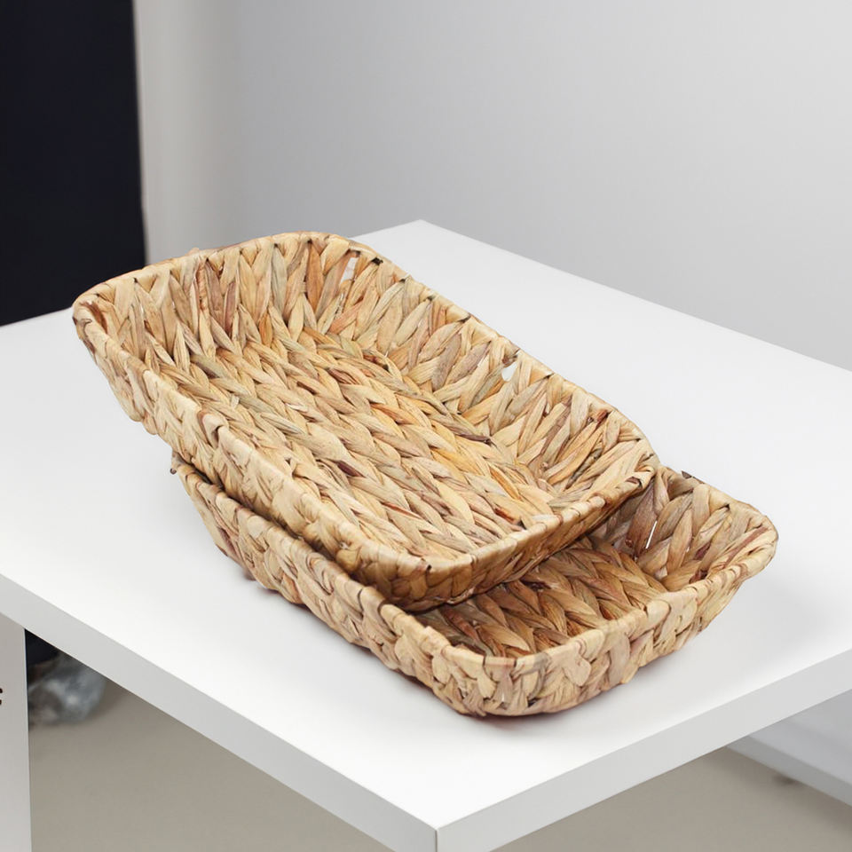 ถาดเสิร์ฟดีลักซ์ขายส่งจากเวียดนาม โครงไม้ไผ่ทนทาน เป็นมิตรกับสิ่งแวดล้อม งานแฮนด์เมดจากหวาย ลายเรขาคณิต