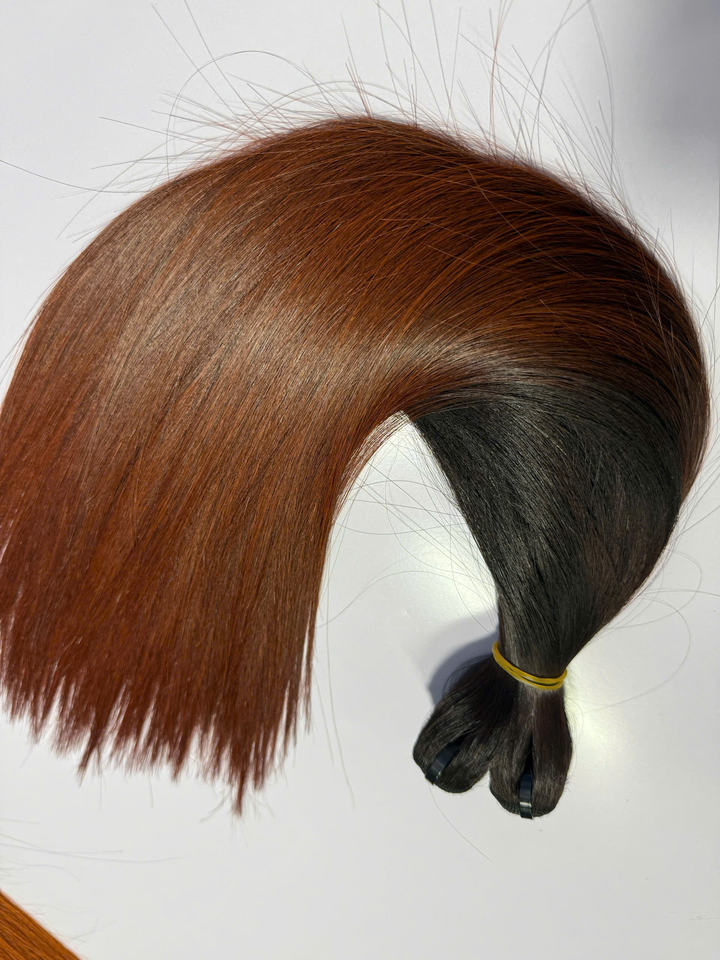 วิกผมดิบสีออมเบรสำหรับต่อผม100% แบบเรียบไร้รอยต่อหรูหราสไตล์ผ้าสีน้ำตาล
