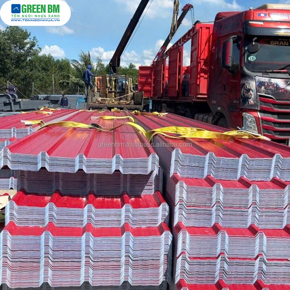 แผ่นหลังคาพลาสติก4ชั้นแผ่นหลังคาพีวีซีเรซินสเปน4ชั้นขนาดความกว้าง1075มม. ของเวียดนาม