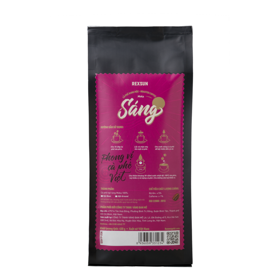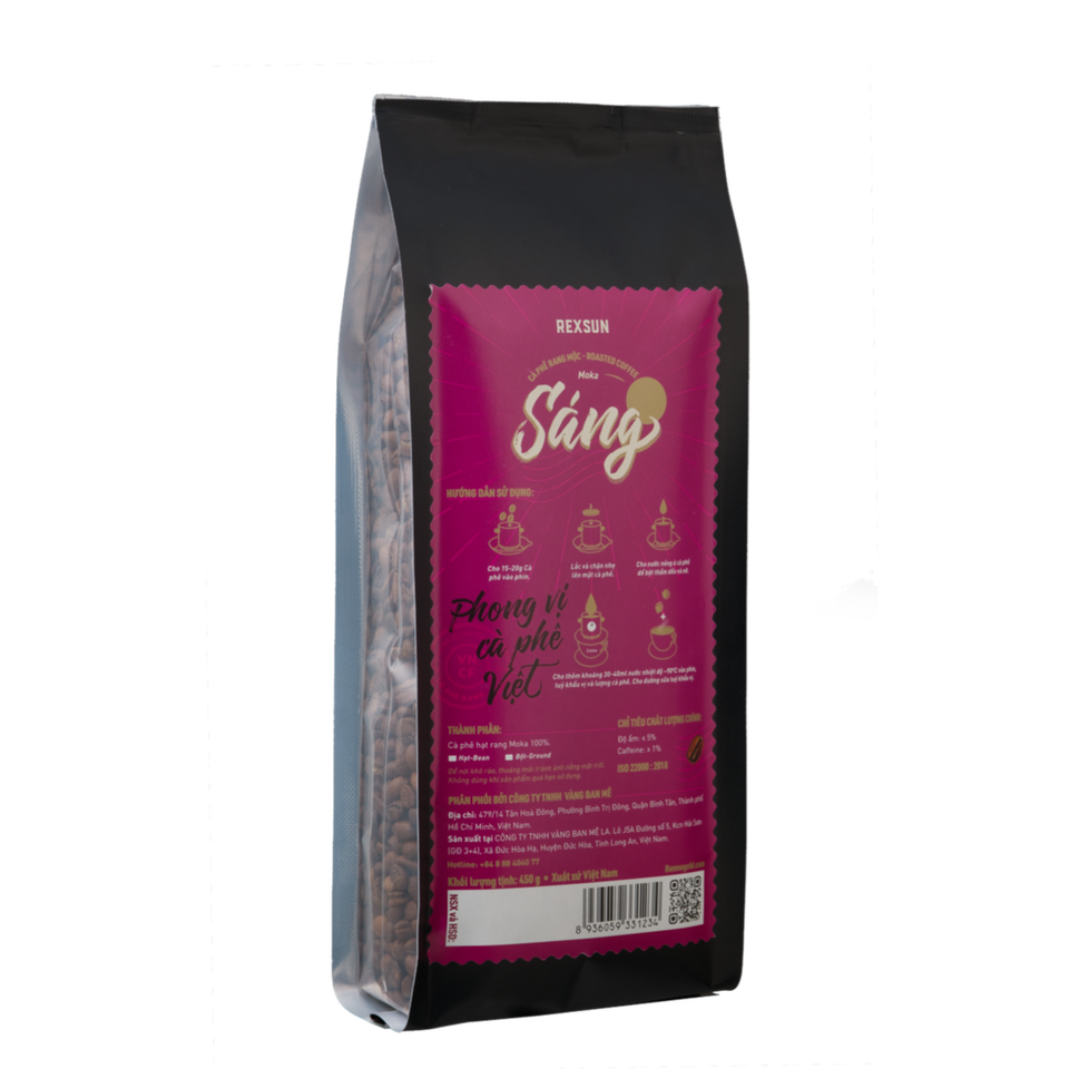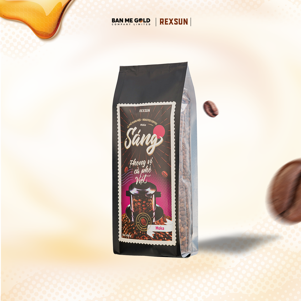 เวียดนามอาราบิก้าบูร์บง (Moka) เมล็ดกาแฟคั่ว450กรัม/ถุงพร้อมโน๊ตไวน์และกลิ่นดอกไม้จากแบรนด์เร็กซ์ซันกาแฟ