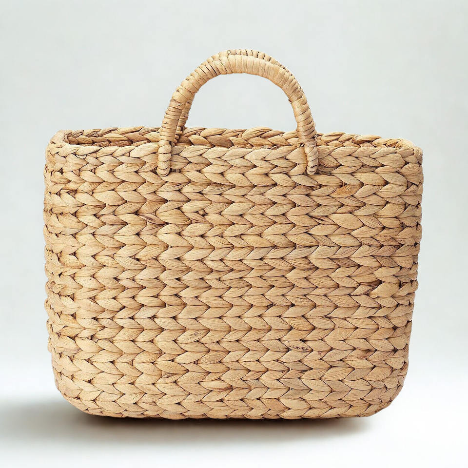 กระเป๋าสานทรงสี่เหลี่ยมขนาดใหญ่ ทำจากผักตบชวา งานฝีมือเวียดนาม พร้อมหูหิ้วเปิดสองข้าง สำหรับส่งออกทั่วโลก ขายส่งในตลาด