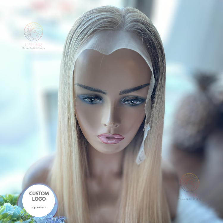 วิกผมบลอนด์แท้จากเวียดนาม คุณภาพดีเยี่ยม รากผมสีเข้ม วิกผมหน้าผากแบบลูกไม้โปร่งใส ผมตรง